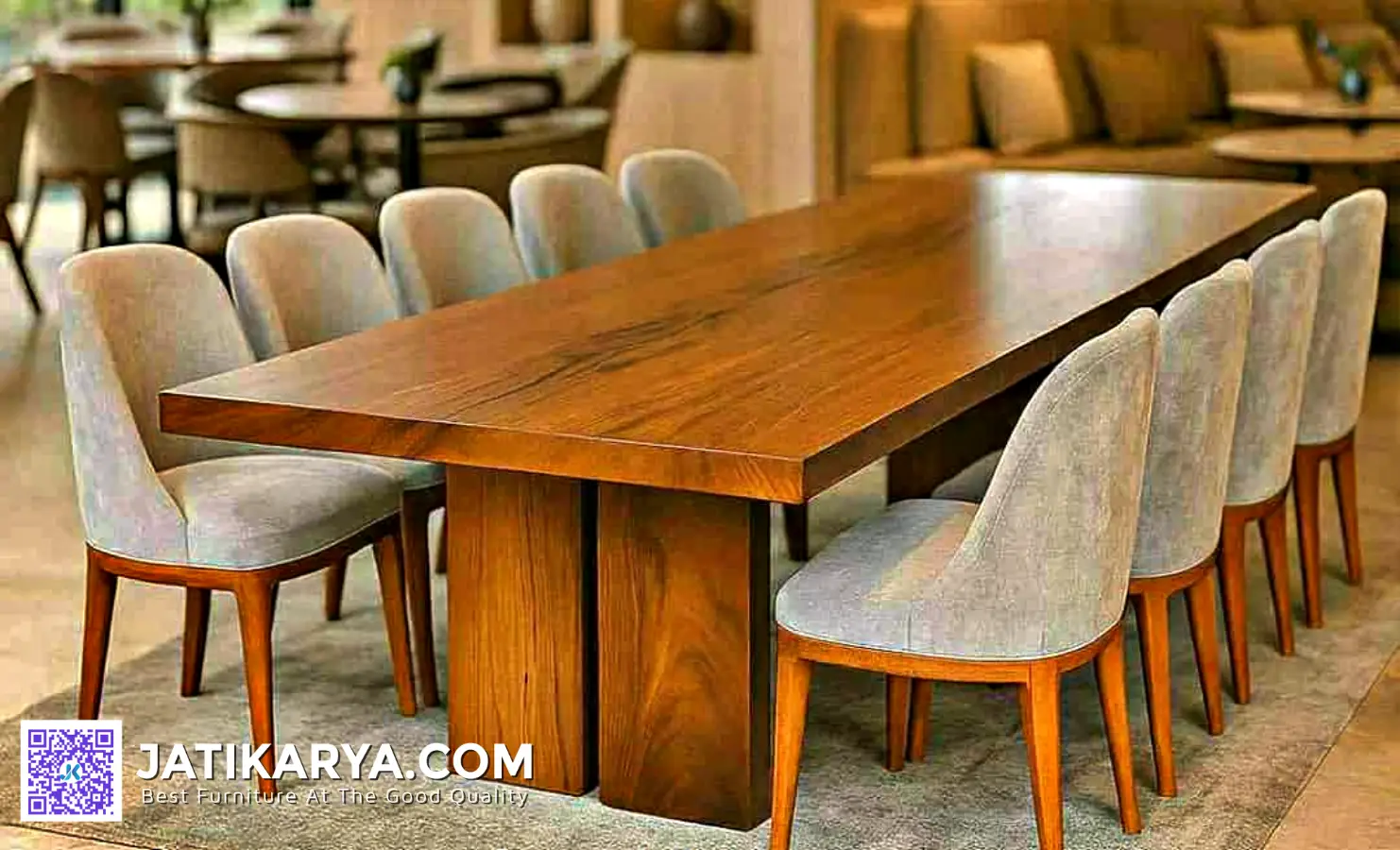 Jangan biarkan ruang makan Anda terlihat biasa saja. Jadikan Meja Makan Trembesi Jepara sebagai pusat perhatian yang menciptakan kesan mewah dan hangat dalam satu waktu.