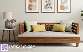 Bale-bale atau Daybed bukan sekadar tempat duduk, melainkan simbol kenyamanan dan status sosial dalam tradisi hunian Jawa. Koleksi Bale-Bale Jati Minimalis Modern Jepara kami dirancang khusus oleh pengrajin ahli dari Toko Mebel Jepara yang telah berpengalaman puluhan tahun dalam seni ukir tangan (hand-carved).
