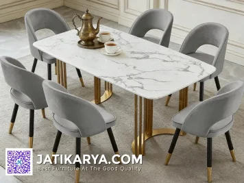 Spesifikasi Produk Meja Makan Modern Mewah Kaki Stainless Minimalis Jepara :