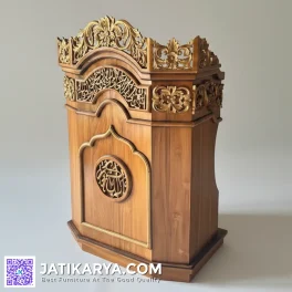 Model Mimbar Podium dengan konstruksi yang kokoh dan bahan baku yang berkualitas menjadikan podium masjid ini akan mampu bertahan lama untuk penggunaan jangka panjang.