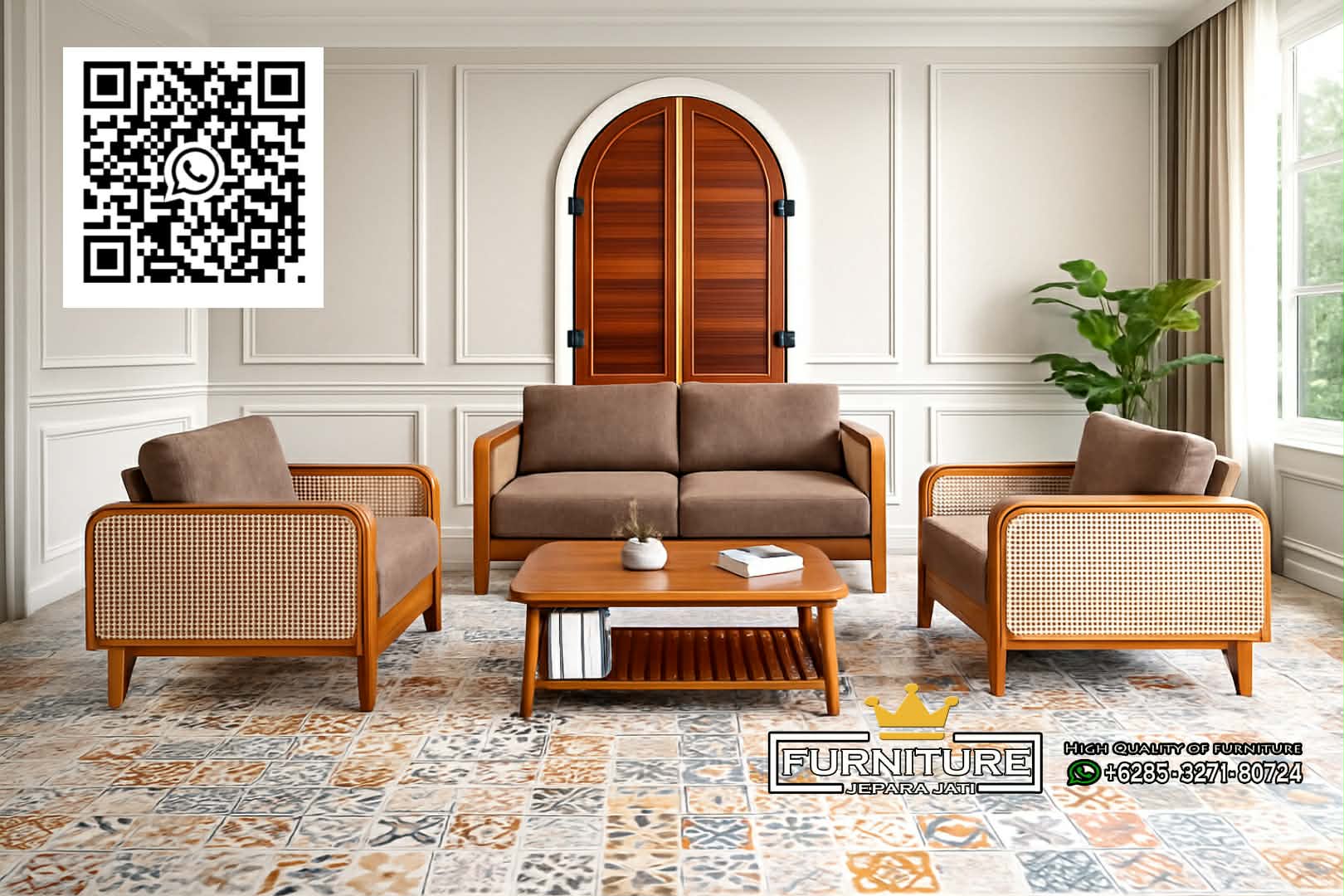 Produk unggulan kami yang wajib anda miliki salah satunya yaitu set kursi tamu minimalis ini dengan berbahan kayu jati kombinasi rotan alami yang akan membuat interior ruang tamu anda semakin menggoda. Banyak varian model yang harus kamu ketahui tentang interior ruang tamu yang bisa menyati dengan desain rumah anda, untuk desain minimalis kamu bisa menggunakan model ini untuk menyatukan desain ruang tamu anda menjadi lebih sempurna dan tidak membosankan.