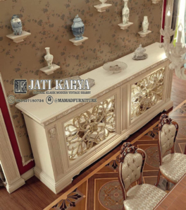 Dengan ukiran yang indah, mebel Jepara tidak hanya menjadi furnitur yang memiliki nilai guna, tetapi juga memiliki nilai seni yang tinggi. Meski begitu, pengrajin mebel Jepara tetap menghadirkan inovasi dan desain yang terbaru agar tidak ketinggalan zaman. Meja Consolle Ukiran Relief Mewah Jepara ini memiliki bentuk dan desain yang sangat mewah dan berbeda dengan yang lainnya. Model dari Meja Consolle Ukiran Relief Mewah Jepara merupakan salah satu model bentuk yang mengkombinasikan denagn bentuk yang lainnya.