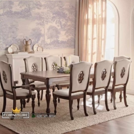 - Set Meja Makan Jati Deborah Victorian Ukiran Mewah