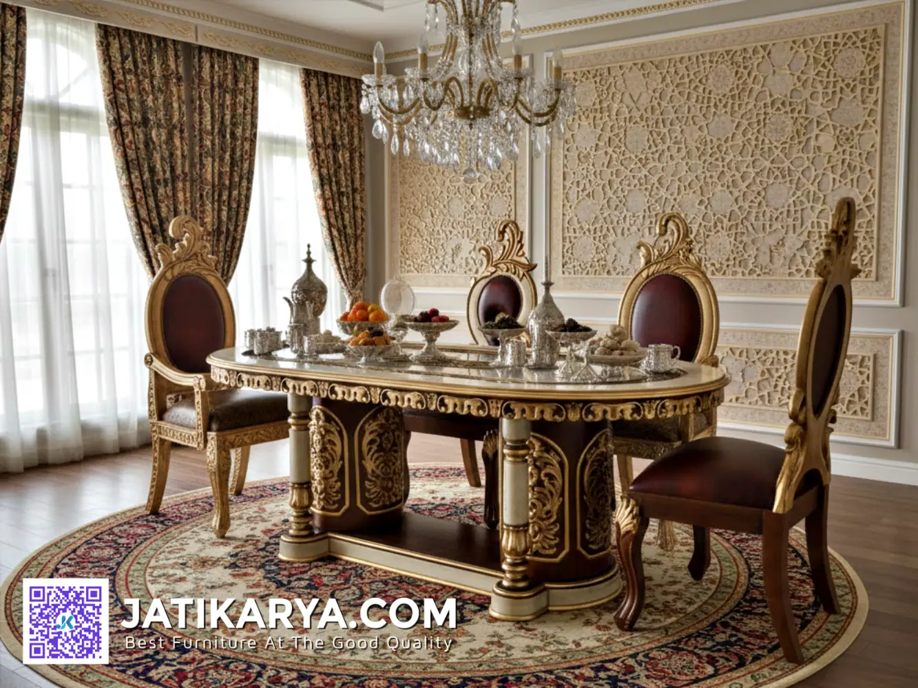 Jika anda sedang mencari produk Meja Makan Mewah, maka produk Meja Makan Jati Mewah Gold Carving ini sangat tepat untuk anda pilih. Dari segi kualitas, produk yang kami tawarkan menggunakan bahan baku yang berkualitas tinggi serta proses pengerjaan yang sangat teliti dengan harga yang sesuai dengan kualitas produk yang kami berikan.