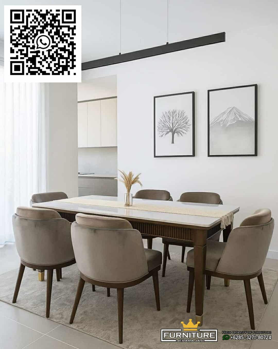 Meja Makan Marmer Kursi Jati Modern