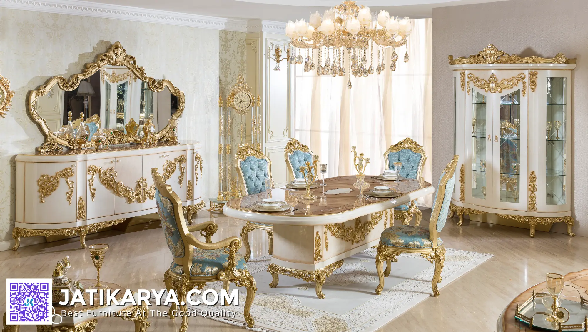 Formasi Meja Makan Mewah Klasik 8 Kursi Ukir Kayu Jepara