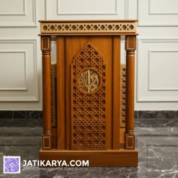 Fitur Mimbar Podium Minimalis Kayu Jati Jepara Berkualitas: