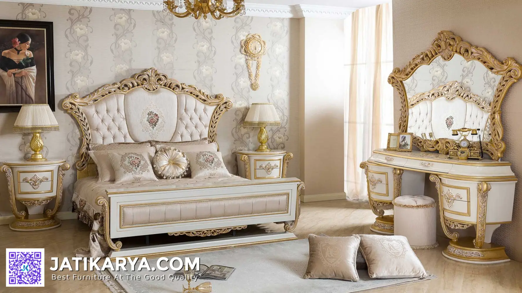Buatlah kamar tidur Anda menjadi tempat yang memikat dan nyaman dengan memilih New Design Tempat Tidur Mewah Elegan Jepara Turky Style kami yang memukau. Dengan berbagai pilihan gaya dan ukuran, Anda dapat menemukan yang sesuai dengan selera dan kebutuhan ruang tidur Anda. Nikmati tidur yang nyaman dan istirahat yang mendalam di Kamar Set Mewah Turki kami yang elegan. Dengan bahan-bahan berkualitas tinggi dan desain yang menawan, setiap tempat tidur menggabungkan keindahan estetika klasik dengan kenyamanan modern.