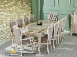 Meja Makan Ukir Jepara Mewah Luxury meja makan ukir jepara mewah ini sangat elegan untuk melengkapi ruang makan anda supaya kelihatan mewah dan nyaman. Meja makan ini dilengkapi dengan 10 kursi yang empuk dengan balutan kain bludru motif kualitas import dari turkey, produk yang sangat best seller ini belum banyak kami produksi karna masih limited… selengkapnya
