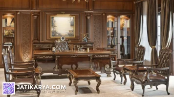 Set Meja Kantor Direktur Ruang Kerja Perusahaan Jakarta ini sangat direkomendasikan bagi anda yang sedang mencari meja untuk kantor/meja direktur dengan tampil beda menggunakan bahan dari kayu yang dominan ke ukiran klasik dengan harga yang tidak menguras anggaran. Meja kantor Mewah ini kami produksi menggunakan bahan dari kayu jati pilihan untuk memberikan kwalitas terbaik.