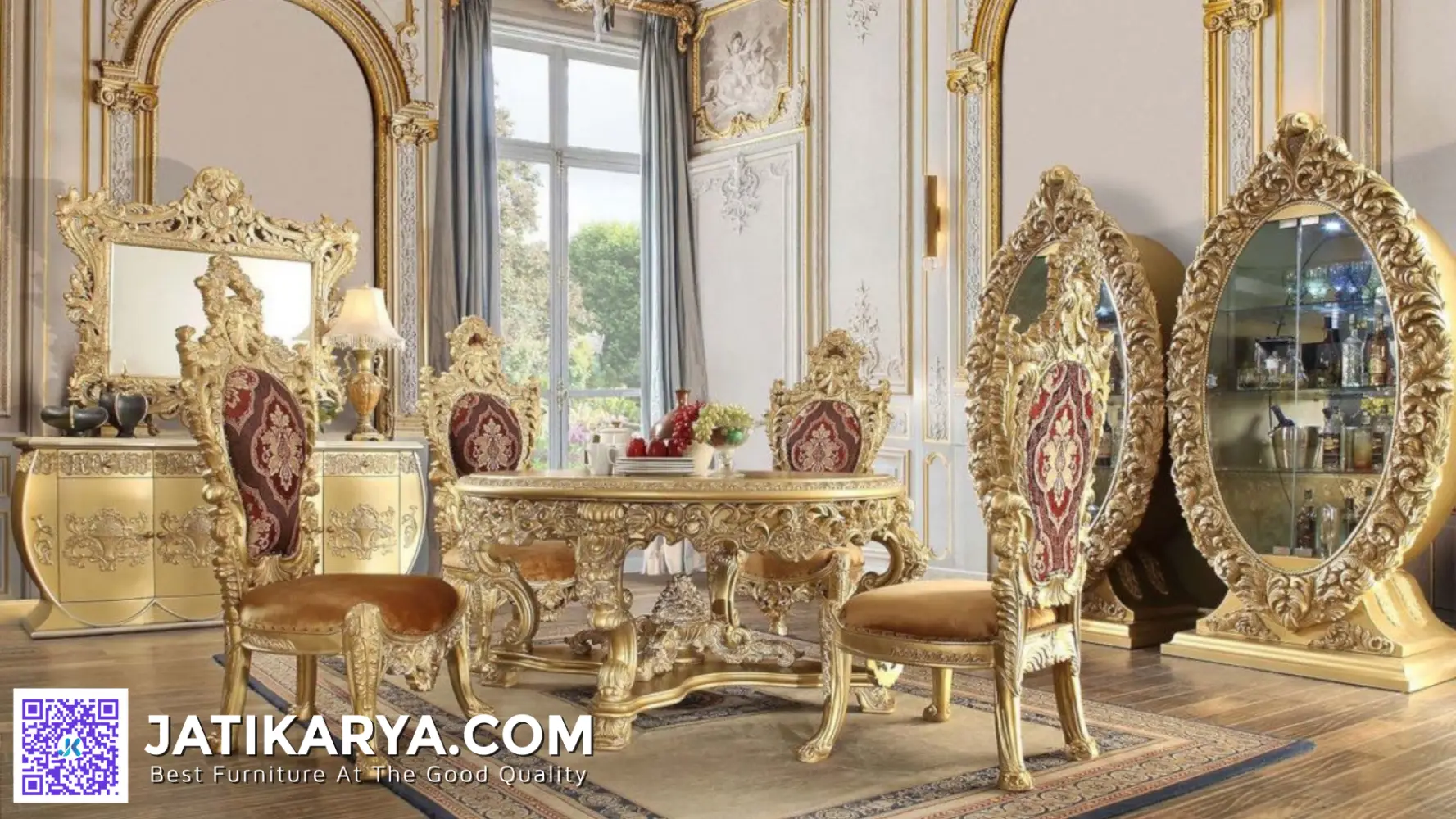 Jika anda sedang mencari produk Meja Makan Jepara Mewah, maka produk Meja Makan Jati Mewah Gold Carving ini sangat tepat untuk anda pilih. Dari segi kualitas, produk yang kami tawarkan menggunakan bahan baku yang berkualitas tinggi serta proses pengerjaan yang sangat teliti dengan harga yang sesuai dengan kualitas produk yang kami berikan.