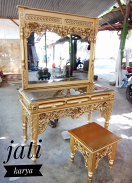 *Harga Hubungi CSMeja Rias Ukir Jati Jepara Meja Rias Ukir Jati Jepara – Produk meja rias yang sangat laris di tahun ini, produk mebel jepara ini sangat elegant untuk di tempatkan di kamar anda dengan model ukiran 3 dimensi dan di sertai warn gold antique jadi kelihatan sangatlah mewah untuk ruang kamar anda. Spesifikasi Meja Rias Jati Jepara… selengkapnya