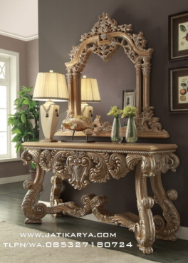 *Harga Hubungi CSMeja Console Ukiran Relief Mewah Meja Console Ukiran Relief Mewah adalah produk meja console ukir jepara yang desainya cocok sekali dengan anda yang suka dengan ukiran kayu jati maupun dari kayu mahoni jepara, dengan ukiran asli dikerjakan tenaga ukir hali dari jepara meja console jati ini mempunyai seni ukir yang berkwalitas tinggi namun kami menjualnya… selengkapnya