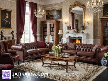 Dalam dunia perkantoran modern, ruang tamu bukan sekadar area menerima tamu, tetapi juga menjadi representasi citra perusahaan. Pemilihan furniture yang tepat akan mencerminkan profesionalisme, kredibilitas, dan kelas sebuah brand. Salah satu pilihan terbaik untuk menghadirkan kesan tersebut adalah Sofa Tamu Kantor Jepara Model Chesterfield untuk Kantor Modern & Klasik.