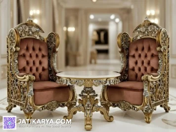 Dari Furnitur Jati Karya, terlihat jelas bagaimana kursi bergaya klasik Eropa dengan ukiran emas (gold leaf finishing) mampu mengubah ruang menjadi lebih berkelas, eksklusif, dan bernilai seni tinggi. Inilah ciri khas mebel Jepara premium yang tidak hanya berfungsi, tetapi juga menjadi karya seni.