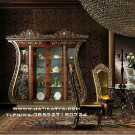 - Almari Hias Mewah Kaca 9 pintu Kayu Jati