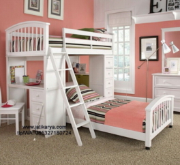 *Harga Hubungi CSTempat Tidur Anak Tingkat Tempat Tidur Anak Tingkat ini mempunyai desain yang bisa untuk belajar anak Anda, dilengkapi dengan dua meja belajar, nakas laci, Semuanya berwarna putih, silahkan dilihat pada halaman cara pemesanan dan pembayaran pada atas halaman atau silahkan hubungi kami di kontak yang sudah tersedia.
