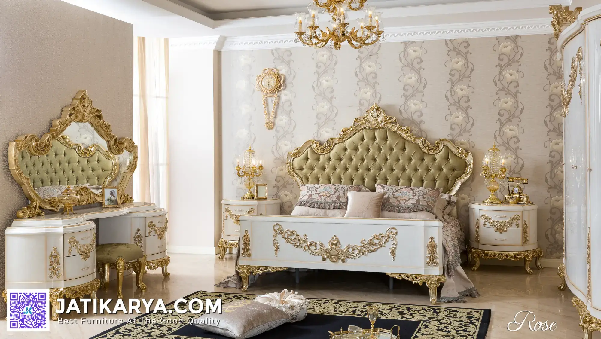 Buatlah kamar tidur Anda menjadi tempat yang memikat dan nyaman dengan memilih Tempat Tidur Mewah Kerajaan Pengrajin Mebel Jepara kami yang memukau. Dengan berbagai pilihan gaya dan ukuran, Anda dapat menemukan yang sesuai dengan selera dan kebutuhan ruang tidur Anda. Nikmati tidur yang nyaman dan istirahat yang mendalam di Set kamar tidur mewah Jepara kami yang elegan. Dengan bahan-bahan berkualitas tinggi dan desain yang menawan, setiap tempat tidur menggabungkan keindahan estetika klasik dengan kenyamanan modern.